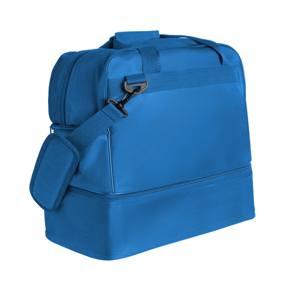 Bolsa deportiva con doble asa y asa larga ajustable para colgar. Bolsillo principal con doble tirador. Bolsillo zapatillero con compartimento extraíble. Anti-humedad. Base con tacos. Fácil limpieza.